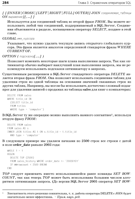 Глава 3. Справочник операторов SQL